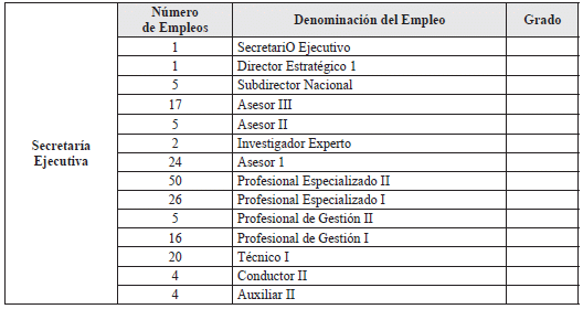 Que para la consecución de los objetivos y logros plasmados en las metas de la Secretaría Ejecutiva y el cumplimiento de la misionalidad de esa dependencia, se requiere efectuar unos nombramientos en los siguientes empleos: