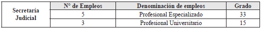 | 4 | Auxiliar Judicial | 4 | Secretaría Judicial |
