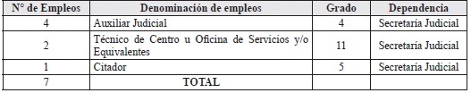 | 2 | Técnico de Centro u Oficina de Servicios y/o Equivalentes | 11 | Secretaría Judicial |