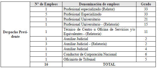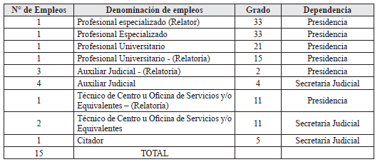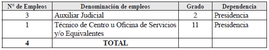 | 3 | Auxiliar Judicial | 2 | Presidencia |