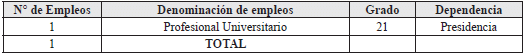 | 1 | Profesional Universitario | 21 | Presidencia |