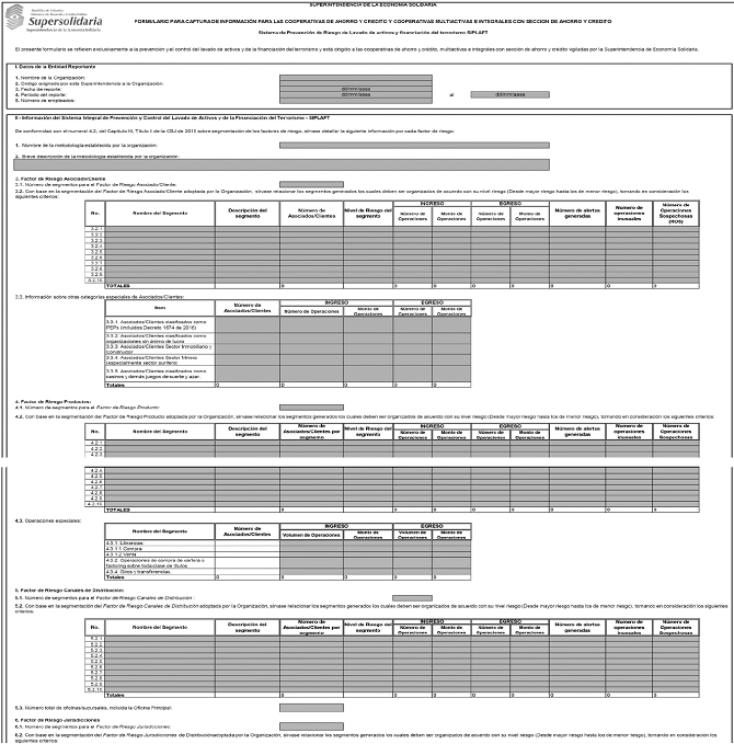 El presente formulario se refieren exclusivamente a la prevención y el control del lavado de activos y de la financiación del terrorismo y está dirigido a las organizaciones de economía solidaria que no ejercen la actividad financiera en los términos previstos en el artículo 39 de la Ley 454 de 1998 y que están bajo la supervisión de la Delegatura para la Supervisión del Ahorro y la Forma Asociativa Solidaria de la Superintendencia de la Economía Solidaria.