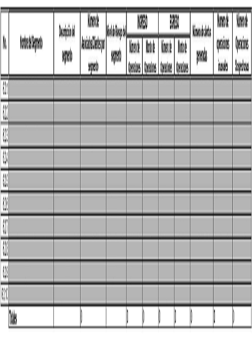 Para efectos del formulario se facilitan 10 campos para igual número de segmentos. Solo se deben diligenciar las líneas correspondientes al número de segmentos si son menos de 10. Si el número de segmentos es mayor a 10, Priorizar los 10 Productos más relevantes dentro del análisis de Riesgos.