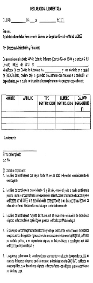 - Diligenciar el formato anexo a la presente circular denominado “DEDUCCIÓN POR DEPENDIENTES” y anexando los soportes correspondientes, según el tipo de dependiente.