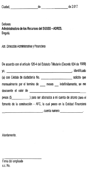 - Diligenciar el formato anexo a la presente circular denominado “Aportes a cuenta de ahorro AFC y Aportes voluntarios al Fondo de Pensiones de Jubilación o Invalidez”, anexando certificación emitida por la entidad financiera o fondo de pensiones.