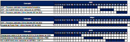 Cronograma a partir del 6 de abril y hasta junio de 2022: