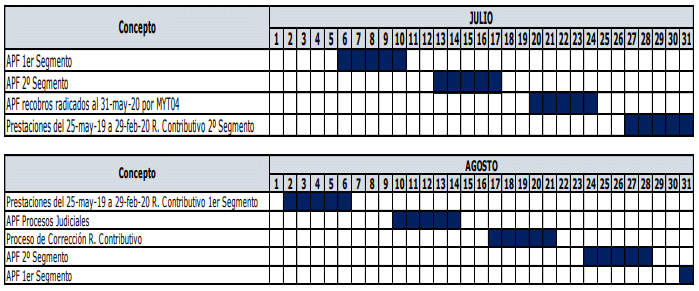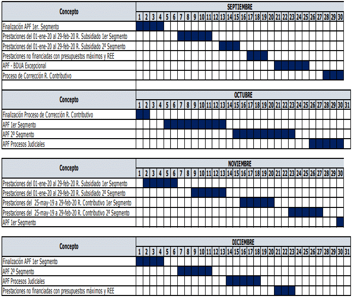 A continuación, se presenta el cronograma de radicación del segundo semestre de 2020, para la presentación de las cuentas por los servicios y tecnologías en salud no financiadas con la UPC:
