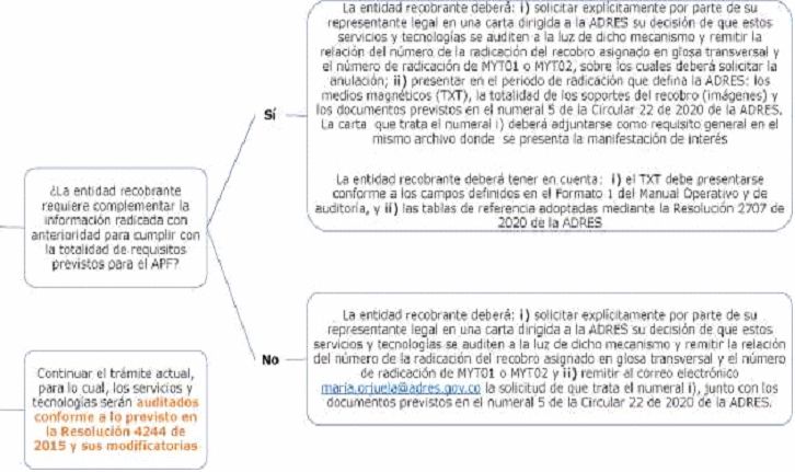 Teniendo en cuenta lo establecido en el artículo 6 de la Resolución 2707 de 2020, en el Anexo 1 de la presente Circular se señalan las rutas que las entidades recobrantes deben considerar si explícitamente solicitan a la ADRES que las cuentas que se encuentran radicadas sin resultado de auditoría se tramiten con las reglas del artículo 237 de la Ley 1955 de 2019.