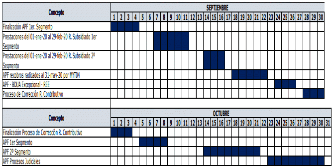 La ADRES actuando en el marco de sus competencias, informa a las entidades interesadas en radicar cuentas por concepto de servicios y tecnologías no financiadas con la UPC prestados a los afiliados del régimen contributivo y subsidiado que el cronograma previsto en la Circular 025 de 2020 para el tercer cuatrimestre de 2020 se modifica como se presenta a continuación: