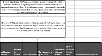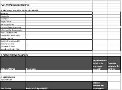 El Plan Anual de Adquisiciones busca comunicar información útil y temprana a los proveedores potenciales de las entidades estatales, para que estos participen de las adquisiciones que hace el Estado.