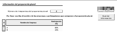 Posteriormente, la Entidad Estatal debe indicar el nombre y la participación de cada uno de los integrantes del oferente plural: