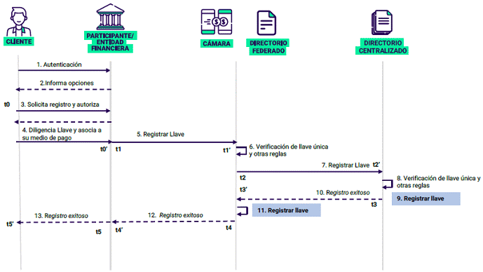 - Se aclara que durante la Fase 4, una vez entre en operación el Directorio Centralizado, el proceso de registro de Llaves deberá seguir lo establecido en el numeral 9 del Anexo 3. El registro de las llaves utilizadas en los pagos entre personas deberá ser realizado directa y exclusivamente por el Cliente, salvo el registro de identificadores como Llaves alfanuméricas a que se refiere el numeral 4.1.1 del Anexo 7.