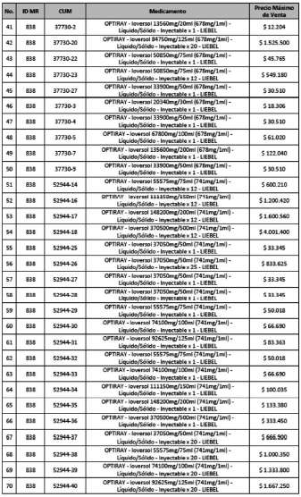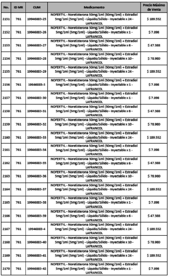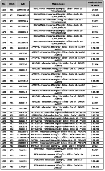 ARTÍCULO 2. PRECIO MÁXIMO DE VENTA DE MEDICAMENTOS ANTERIORMENTE REGULADOS. <Circular derogada por la Circular 13 de 2022. Surte efecto a partir del 26 de septiembre de 2022> Fíjese el Precio Máximo de Venta de los medicamentos regulados en anteriores circulares por esta Comisión, así: