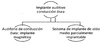 3.13. Implante auditivo de conducción ósea: dispositivo acústico externo, alimentado eléctricamente, destinado a compensar la discapacidad auditiva mediante la transmisión de vibraciones, desde ondas sonoras traducidas, a través del cráneo hasta el oído interno. Por lo general, incorpora un micrófono, amplificador y vibrador conectados a un imán externo que está acoplado magnéticamente a un imán que no vibra implantado en la cabeza para su retención; puede incluir dispositivos de posicionamiento y protección. El micrófono recibe ondas sonoras y las convierte en señales eléctricas enviadas al vibrador que transmite vibraciones a los oídos internos para escuchar. Este dispositivo se usa generalmente para tratar la discapacidad auditiva debido a patologías obstructivas del oído medio y/o externo. Comprende el audífono de conducción ósea: implante magnético y el sistema de implante de oído medio parcialmente implantable.