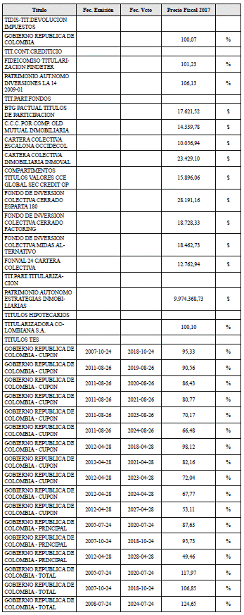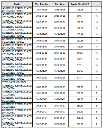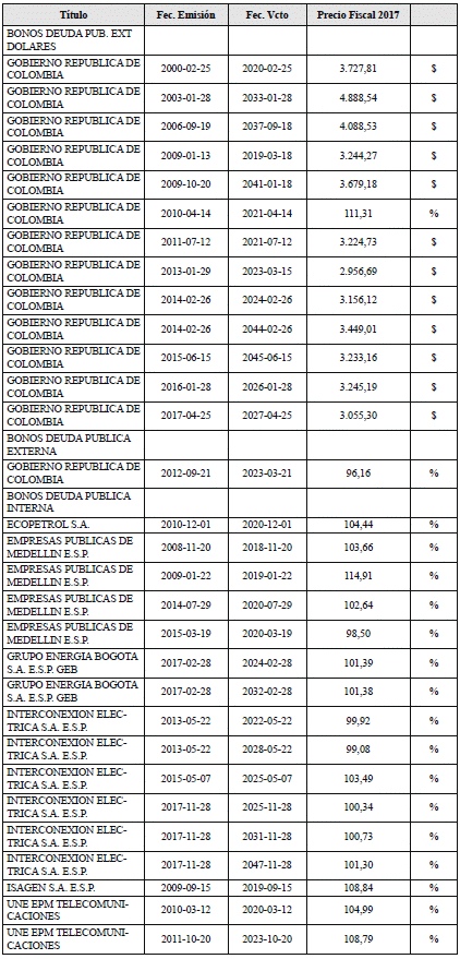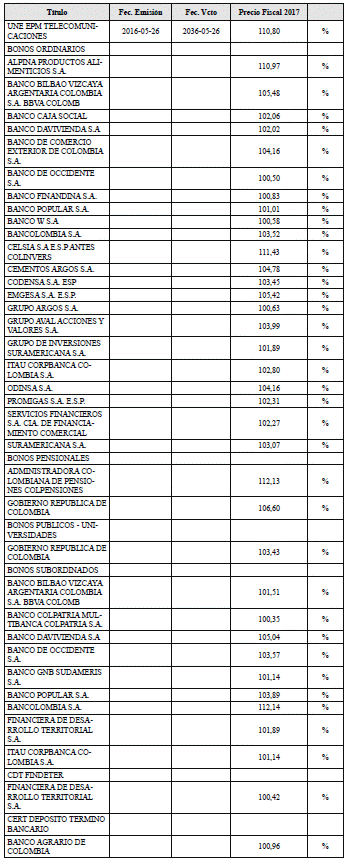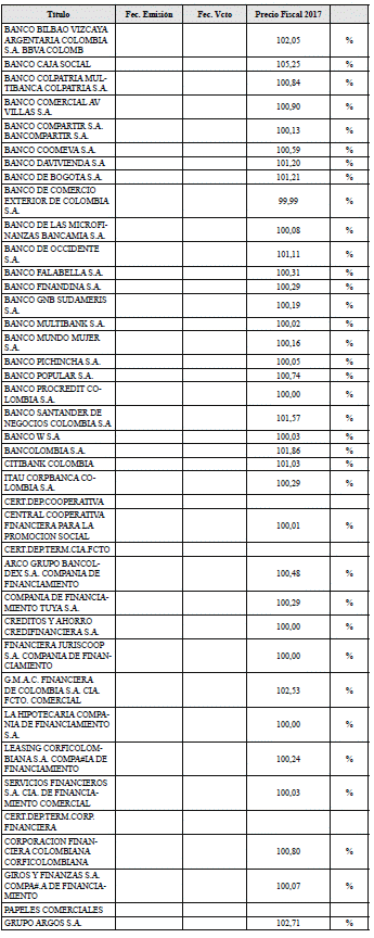 La Unidad Administrativa Especial, Dirección de Impuestos y Aduanas Nacionales, con base en la información suministrada por la Bolsa de Valores de Colombia mediante oficio de 26 de enero de 2018, sobre el precio promedio de transacciones de los diferentes títulos que se transan en la Bolsa, realizadas en el mes de diciembre de 2017, de conformidad con lo previsto en el inciso segundo del artículo 271 del Estatuto Tributario,