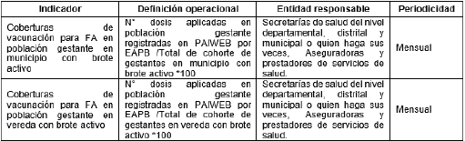 Tabla 2. Indicadores de seguimiento a la atención de las gestantes vacunadas y sus hijos