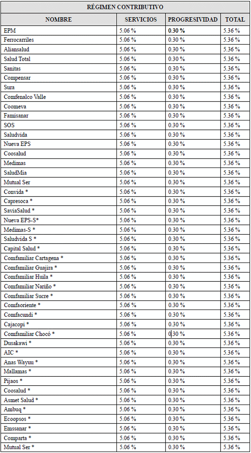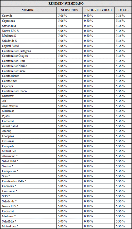 * Incluye: Régimen Contributivo Administrando Población Subsidiada Códigos Movilidad.