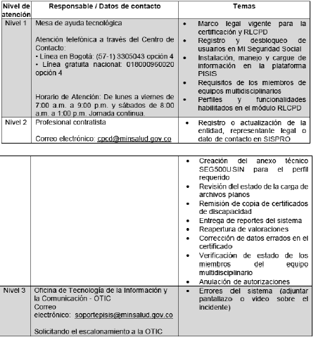 1.8. Medios y niveles de atención de solicitudes relacionadas con el aplicativo RLCPD. Los niveles de atención de las solicitudes relacionadas con la habilitación del módulo RLCPD y los temas que se pueden consultar son los siguientes: