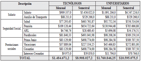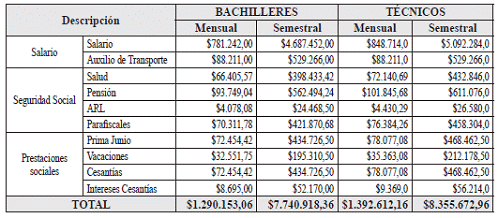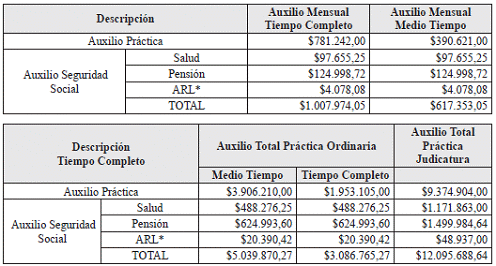 *Nota: El valor de la ARL corresponderá con el nivel de riesgo en el cual esté clasificada la entidad donde el joven realiza su práctica. En la presente tabla se presenta el valor que corresponde a la cotización de la ARL riesgo 1.