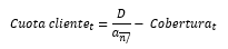 Cuota_Clientet se calcula como una anualidad uniforme ordinaria menos la cobertura al momento t, conforme se establece en la siguiente expresión: