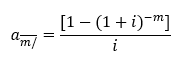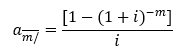 = Corresponde al valor presente de m pagos uniformes unitarios periódicos a la tasa efectiva mensual i, calculado de acuerdo con la siguiente expresión: