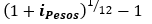 | Tasa efectiva mensual equivalente a la tasa efectiva anual pactada en el crédito i, calculada de la siguiente forma: | |