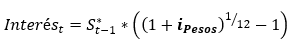 5.1.2. Interést= Monto en pesos correspondiente al interés liquidado sobre el saldo de capital vigente no vencido.