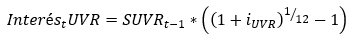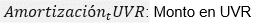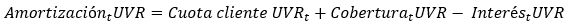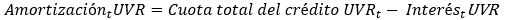 AmortizacióntUVR = Cuota Total del créditoUVR*t – InteréstUVR