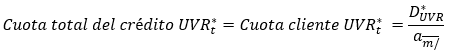 5.2.4. Cuota Total del crédito UVR*t = Cuota_Cliente UVR*t