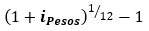 | Tasa efectiva mensual equivalente a la tasa efectiva anual | |
