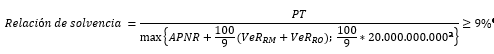 APNR= Activos Ponderados por Nivel de Riesgo Crediticio calculados de acuerdo con las instrucciones impartidas en el numeral 3 de la Parte II del presente Capítulo y en la Proforma F.7000-22 (Formato 422) “Declaración del Control de Ley Relación Mínima de Solvencia - Sociedades Fiduciarias”.