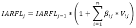 El IARFL se calcula mensualmente en función del valor de sus componentes al último día hábil de cada mes. El valor del IARFL se obtiene a partir de su nivel en el mes anterior afectado por la variación porcentual mensual de cada índice que lo conforma, ponderada por su porcentaje de participación, como se muestra a continuación: