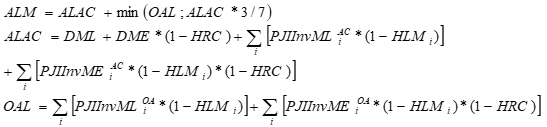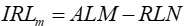 El Indicador de Riesgo de Liquidez (IRLm) en cada fecha de evaluación será la diferencia de los activos líquidos ajustados por 'liquidez de mercado' y riesgo cambiario (ALM), y el requerimiento de liquidez neto total de la primera (1ª) banda, o de la sumatoria de las 3 primeras bandas de tiempo (RLN), según corresponda. Tal cálculo se expresa de la siguiente manera: