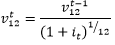 Tasa de interés anual aplicable en el mes t contado a partir del momento