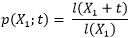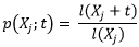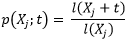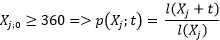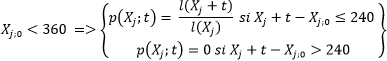 p(Xj;t): Probabilidad de que una persona de edad Xj sobreviva hasta la edad Xj+t, considerando ambos argumentos en meses, dependiendo del beneficiario al que se refiere la tabla de Asignación Pensión por invalidez y la de Asignación Pensión de sobrevivencia de este anexo. También se puede considerar como la probabilidad condicionada.