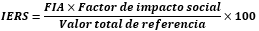 1.4.2. Propósito: cuantificar la exposición del portafolio de la entidad a riesgos sociales en proyectos u operaciones. Se compone del FIA, ponderado por un factor de impacto social (FIS) que refleja el grado de alineación a estándares internacionales[1], en relación con el valor total del portafolio de activos de la entidad vigilada.