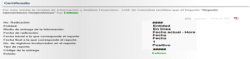 Recuerde que la fecha del reporte de operaciones sospechosas ROS corresponde al día en que realiza el envío del reporte y el sistema le genera el certificado de recibo de información, nada tiene que ver con la fecha del periodo de análisis de la operación sospechosa.
