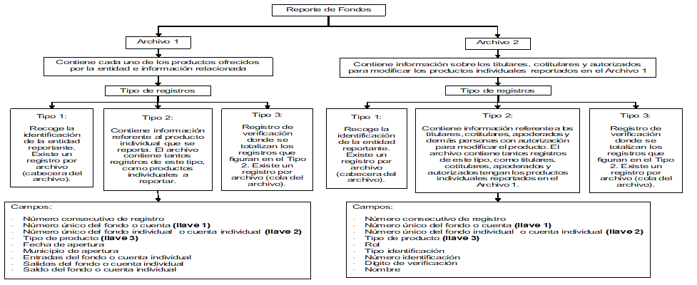 El Archivo 2 que la entidad reportante debe enviar a la UIAF contiene información sobre cada uno de los productos financieros que tienen las campañas, grupos y partidos políticos que son reportados en el Archivo 1. Dentro del archivo en mención se debe incluir 3 tipos de registros: encabezado (registro tipo 1), cuerpo del formato (registro tipo 2) y cola (registro tipo 3).