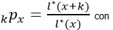 = Probabilidad de que una persona con x meses cumplidos, sobreviva