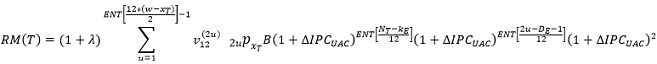 La reserva matemática calculada al final del mes T, estará dada por los siguientes casos: