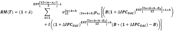 Para el cálculo de la reserva matemática en cada uno de los 4 escenarios mencionados anteriormente se tiene la siguiente notación: