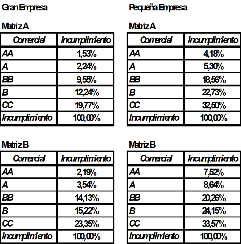 6. Como resultado del proceso de actualización del Modelo de Referencia de Cartera Comercial -MRC-, se modifica el numeral 5 del Anexo 3 con el fin de establecer las nuevas matrices que las entidades deben tener en cuenta para la asignación de la probabilidad de incumplimiento de sus deudores.