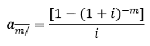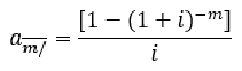 = Corresponde al valor presente de m pagos uniformes unitarios periódicos a la tasa efectiva mensual i, calculados de acuerdo con la siguiente expresión: