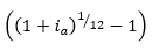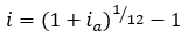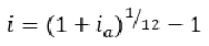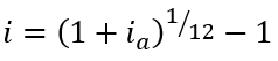 = Tasa efectiva mensual equivalente a la tasa efectiva anual pactada en el crédito i, calculada de la siguiente forma: