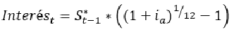 5.1.2. Interést= Monto en pesos correspondiente al interés liquidado sobre el saldo de capital vigente no vencido.