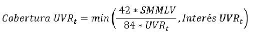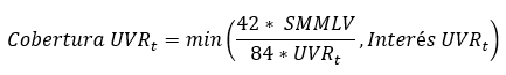 = La cobertura se calcula como el mínimo entre el monto mensual de la cobertura calculado de acuerdo con el Salario Mínimo Mensual Legal Vigente (SMMLV) al momento del desembolso del crédito, el valor de la UVR en el tiempo