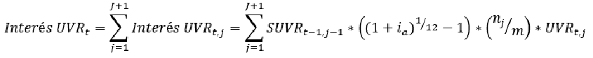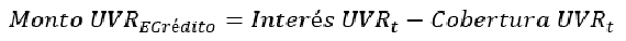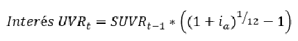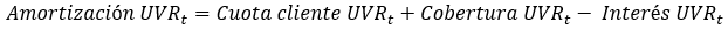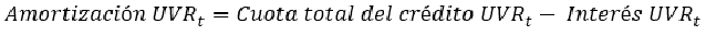 AmortizacióntUVR = Cuota Total del créditoUVR*t – InteréstUVR.