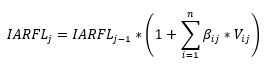 El IARFL se calcula mensualmente en función del valor de sus componentes al último día hábil de cada mes. El valor del IARFL se obtiene a partir de su nivel en el mes anterior afectado por la variación porcentual mensual de cada índice que lo conforma, ponderada por su porcentaje de participación, como se muestra a continuación: