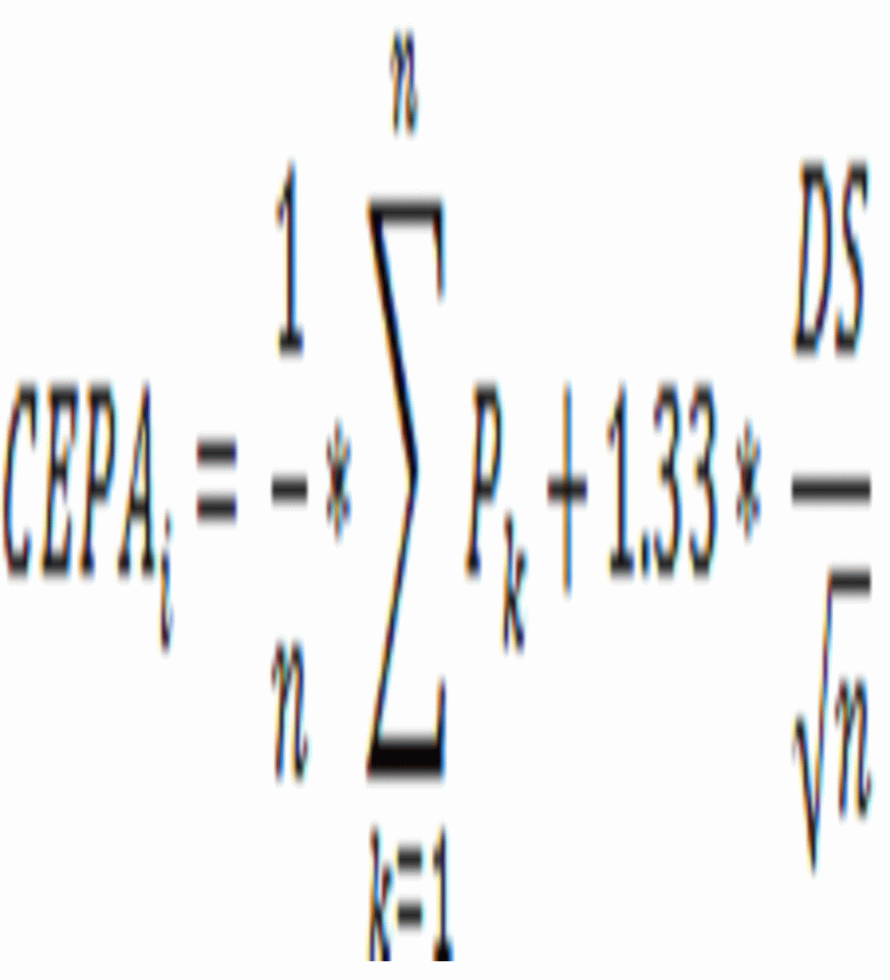 El CEPA de cada categoría corresponde al promedio simple de los montos pagados por concepto de prestaciones asistenciales para los siniestros pagados de cada categoría (i) en los últimos 3 años, ajustado por un margen de seguridad. El margen de seguridad está definido en función de la desviación estándar de los mismos montos y el número de siniestros considerados. Lo anterior, corresponde a la siguiente fórmula: