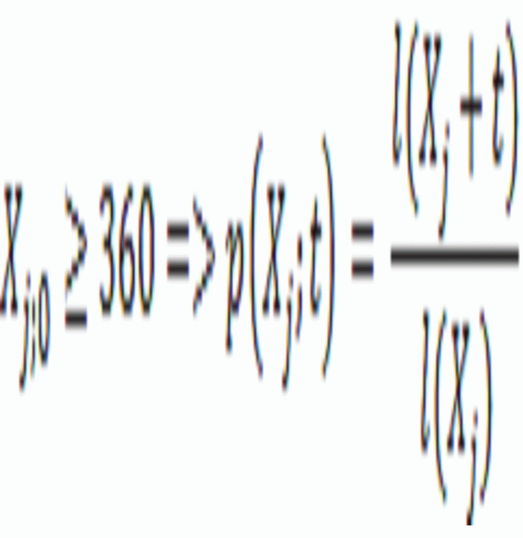 p(Xj;t): Probabilidad de que una persona de edad Xj sobreviva hasta la edad Xj+t, considerando ambos argumentos en meses, dependiendo del beneficiario al que se refiere la tabla de Asignación Pensión por invalidez y la de Asignación Pensión de sobrevivencia de este anexo. También se puede considerar como la probabilidad condicionada.